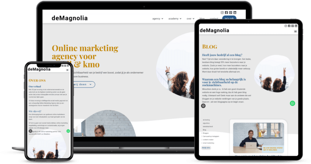 Els helpt kmo’s en retailers met hun online aanwezigheid. Wij creëerden een website die in een oogwenk duidelijk maakt waarvoor De Magnolia staat en welke services ze verlenen.