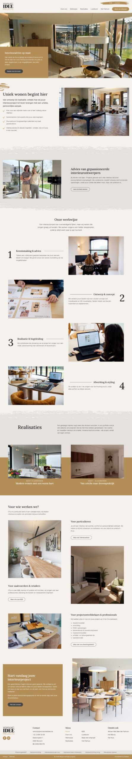 We ontwierpen een overzichtelijke website in Elementor, zonder overbodige franjes. De lay-out is bewust rustig gehouden zodat elk project de aandacht krijgt die het verdient. De navigatie is intuïtief, de structuur logisch opgebouwd.